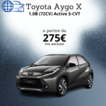 Compatta, agile e dal design audace, la Toyota Aygo X è la city car perfetta per chi vuole distinguersi in città. Il motore benzina 1.0 da 72 CV, abbinato al cambio automatico S-CVT, offre una guida fluida e piacevole, ideale per il traffico urbano. Grazie alle dimensioni ridotte e all’assetto rialzato, si muove con facilità in ogni contesto, garantendo comfort e visibilità superiori. Gli interni moderni e ben equipaggiati offrono tutto ciò che serve per viaggi comodi e sicuri. Con il noleggio a lungo termine, puoi guidare la nuova Aygo X senza pensieri di manutenzione o assicurazione, godendo solo del piacere di essere sempre in movimento.